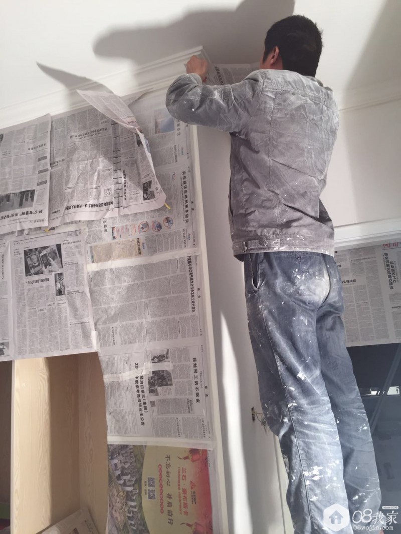 师傅在刷墙固
