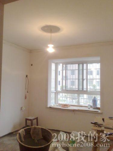 没有气泵,不好弄灯光槽,吊顶显得有点突兀,所以客餐厅四周贴了一圈石膏线