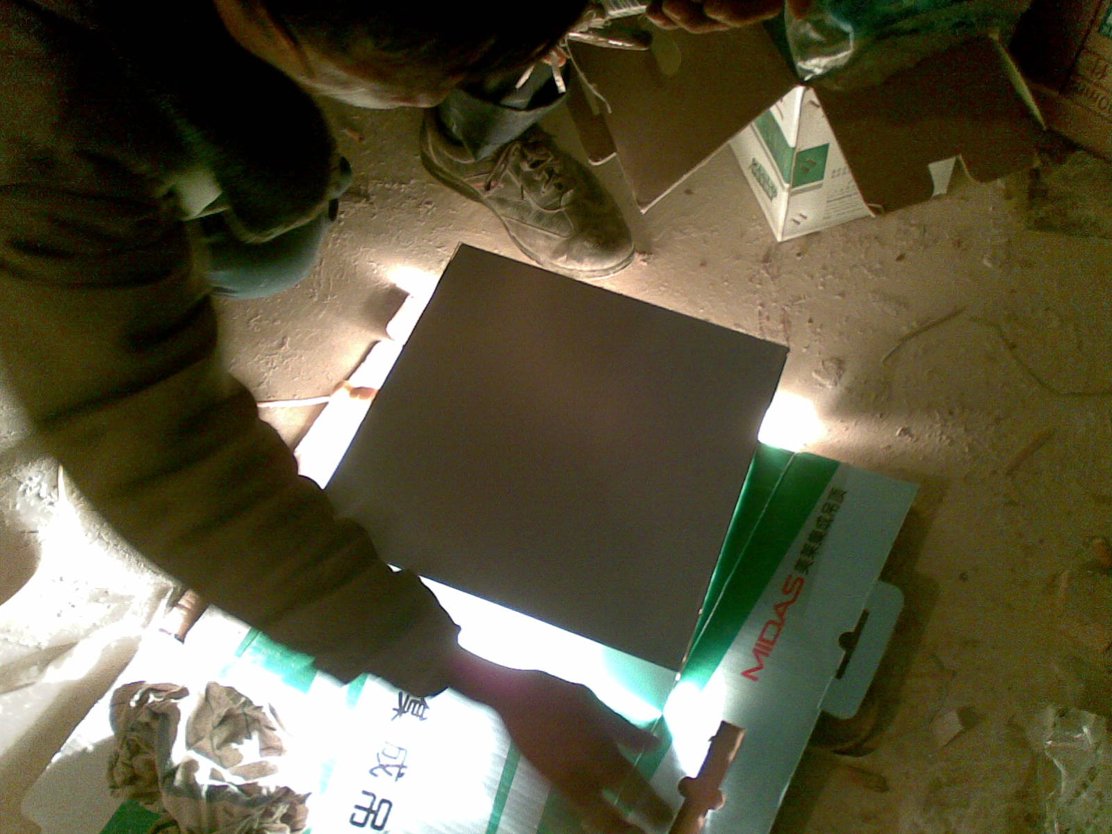 灯亮着,在盒子下面