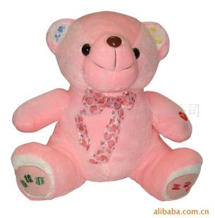 3. 填充物:环保PP棉、五金电子元件4.尺寸:35*24*26cm *你只要按按小熊的左耳,小熊就会唱儿歌给你听.