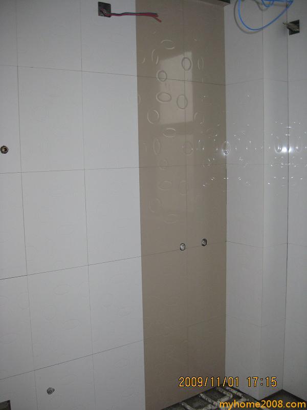 昨天泥工好不容易安分了一下,今天下午跑去帮他亲戚买板材,又是三点多才去工地,次卫墙砖和地砖已经贴好了,主卫地砖贴了一大半,还行咯。。。