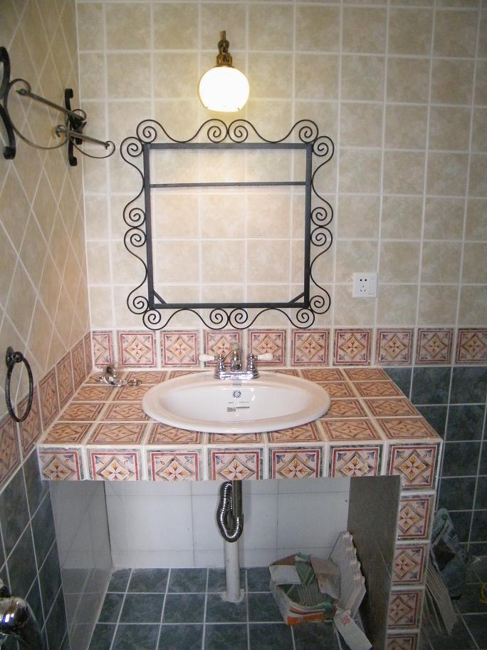镜前灯、铁艺的毛巾杆和镜子