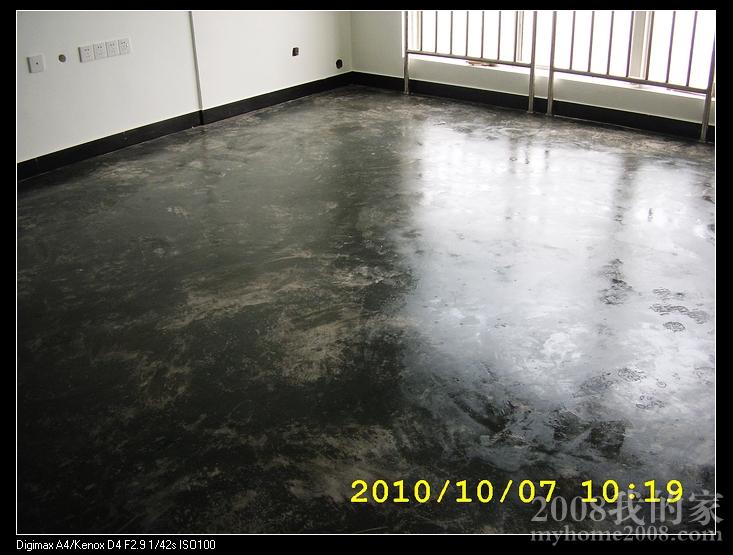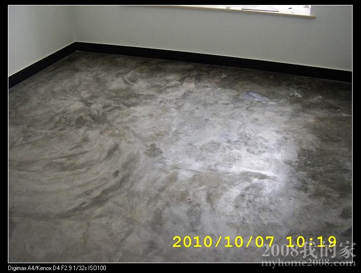 水泥地面我在网上买了增硬增亮剂处理了一下。可惜那天去房子的时候没带照相机原始地面没有拍下。原来做实验的时候,有过几张原始地面图。总的来说,效果还可以。特别是客厅,有点像蜡染的样子。