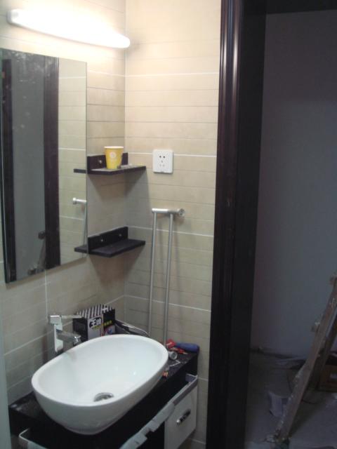 在装浴室柜的时候,电工师傅也在装我从网上和从红星那里买的客厅灯。