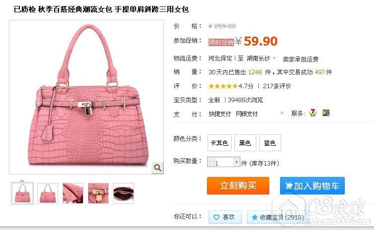 不管有得没得都去看看 这次看到了一款包包,折扣后只需要59.9噢。价格可是非常的亲民呢