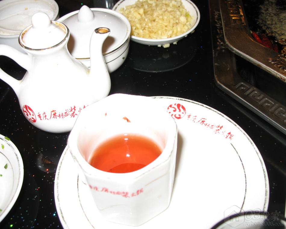 火锅底料中的油很厚,花椒、辣椒也是放肆放。料碟很多种,不像长沙的还要另收费,品种也不多。配着这种红色的茶水,倒是很解油腻。同学说这个茶是红茶,看着颜色很清亮,口感也不错,不会有涩的感觉。