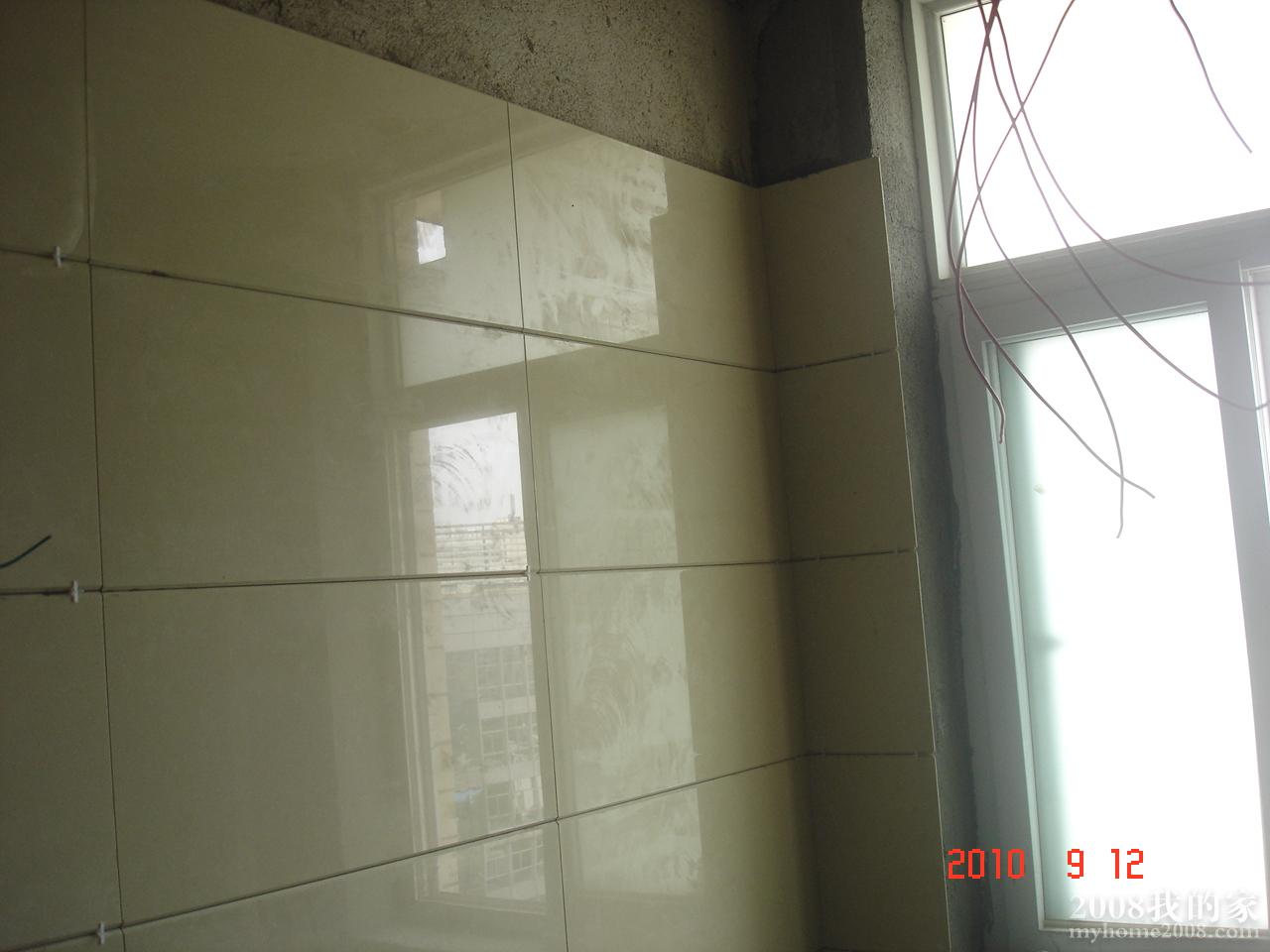 厨房的铺贴,有好几个地方拼贴不在一条线,老彭说瓷砖有问题