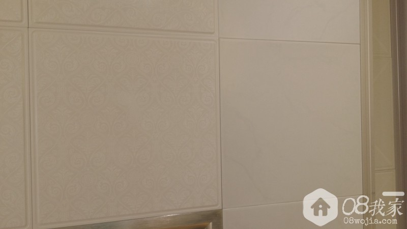 到店后,看到了这次新推出的抗污板,5月出厂的板子,侧面印着尼罗河,型号是他们的新尼罗河。比老款多了银边,不错。 厨房就订了这个式样。 然后花纹的用在卫生间。